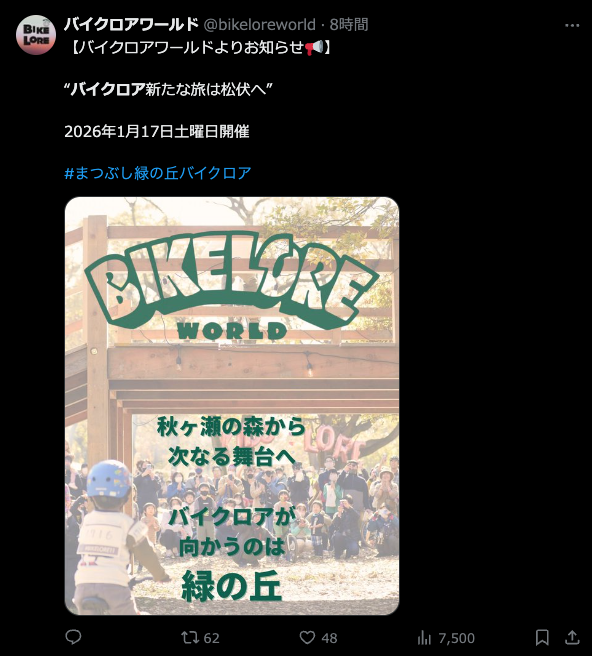 バイクロアワールドのほうの公式Xで、イベント情報のポストがありました!
