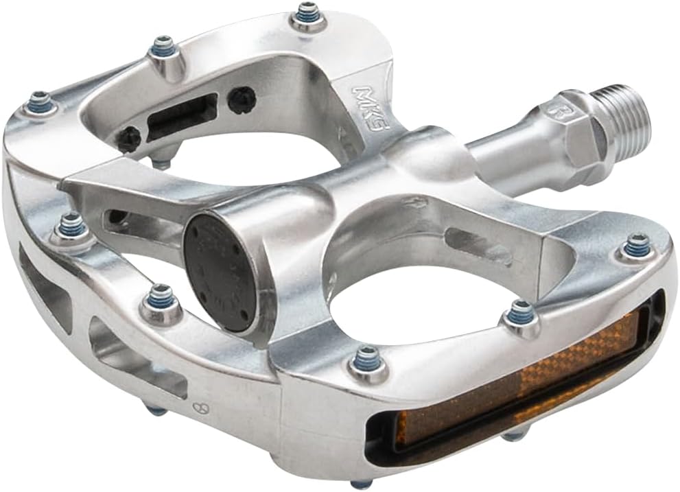 MKSのペダルの特徴は、何と言ってもその「回転性能」。手で回してみると、いつまでも滑らかに回り続けるあの感覚は、まさに芸術品です。この滑らかさが、僕たちのペダリングをどれだけ快適にしてくれていることか。