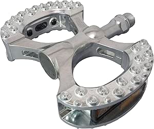 しかし、これはデザインだけのペダルではありません。ベースとなった名作ペダル譲りの8本のスパイクピンと、踏み面全体が少し凹んだコンケーブ設計により、スニーカーのソールを確実に捉え、見た目からは想像できないほどのグリップ力を生み出します。「見た目の楽しさ」と「本格的な機能性」のギャップこそ、プレッツェルの真骨頂です。